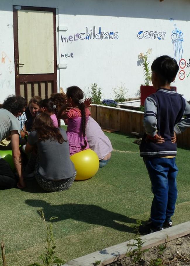 À donc commencé à s’organiser et se structurer le collectif. Il fallait travailler avec les bénévoles sur place, comprendre le contexte social et culturel du camp, s’organiser avec des traducteurs, lancer un appel et coordonner un réseau d’intervenants. Parallèlement et début 2016, MSF, tel Zorro décide de construire un camp aux normes internationales. Mais les shelters installés ne possèdent ni eau ni électricité et lorsqu’on s’étend, à l’intérieur, pour dormir on ne peut plus bouger. Les lieux collectifs restent fondamentaux pour se retrouver et surtout jouer, pour les enfants. Se mettent en place, deux espaces principaux dédiés aux enfants et animés par les bénévoles de deux associations anglaises. Les joyeux tatamis contrastent avec la grisaille des sols caillouteux du camp. Il s’agit des relais de la cabane de Zoé et Lydia et un peu plus loin le « Women center » accueille les mamans et les enfants. Ce sont les principaux points de chute de « Fragile-les-bulles » aujourd’hui. Tout l’été, « Fragile-les-bulles » a continué d’accompagner des intervenants et diffusé l’appel à contribution autour de réseaux artistiques européens pour des ateliers de création collective plutôt par sessions courtes ou des petits rendez-vous culturels adaptés : projections, concerts, spectacles... Les propositions continuent d’affluer. Aujourd’hui, le collectif est composé de six coordonnatrices permanentes faisant le lien avec des artistes, collectivités territoriales, institutions culturelles et photoreporters. Elles s'assurent notamment que les propositions artistiques sont adaptées, que le cadre d'intervention soit préparé au mieux et co-gèrent avec ces derniers le planning des interventions. Une cellule documente doucement la délicate situation et renseigne sur les dynamiques bénévoles, au travers de portraits et de témoignages.